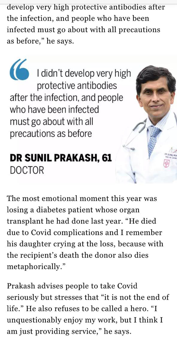 The most emotional moment this year was losing a diabetes patient whose organ transplant he had done last year. "He died due to Covid complications and I remember his daughter crying at the loss, because with the recipient's death the donor also dies metaphorically."
